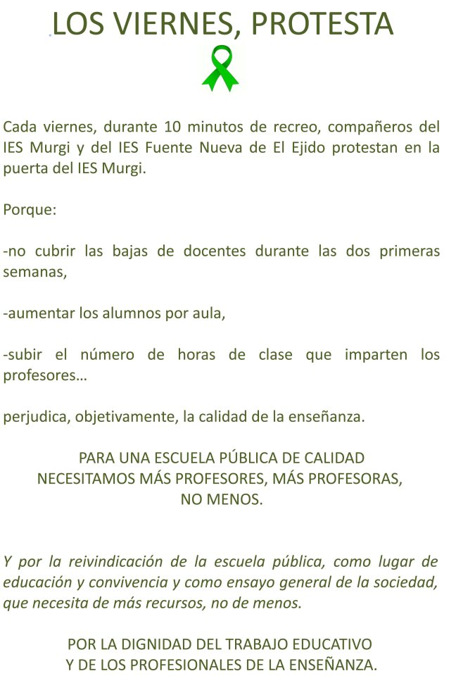 PROTESTA", durante 10 minutos de recreo, compañeros del IES Murgi y del IES Fuente