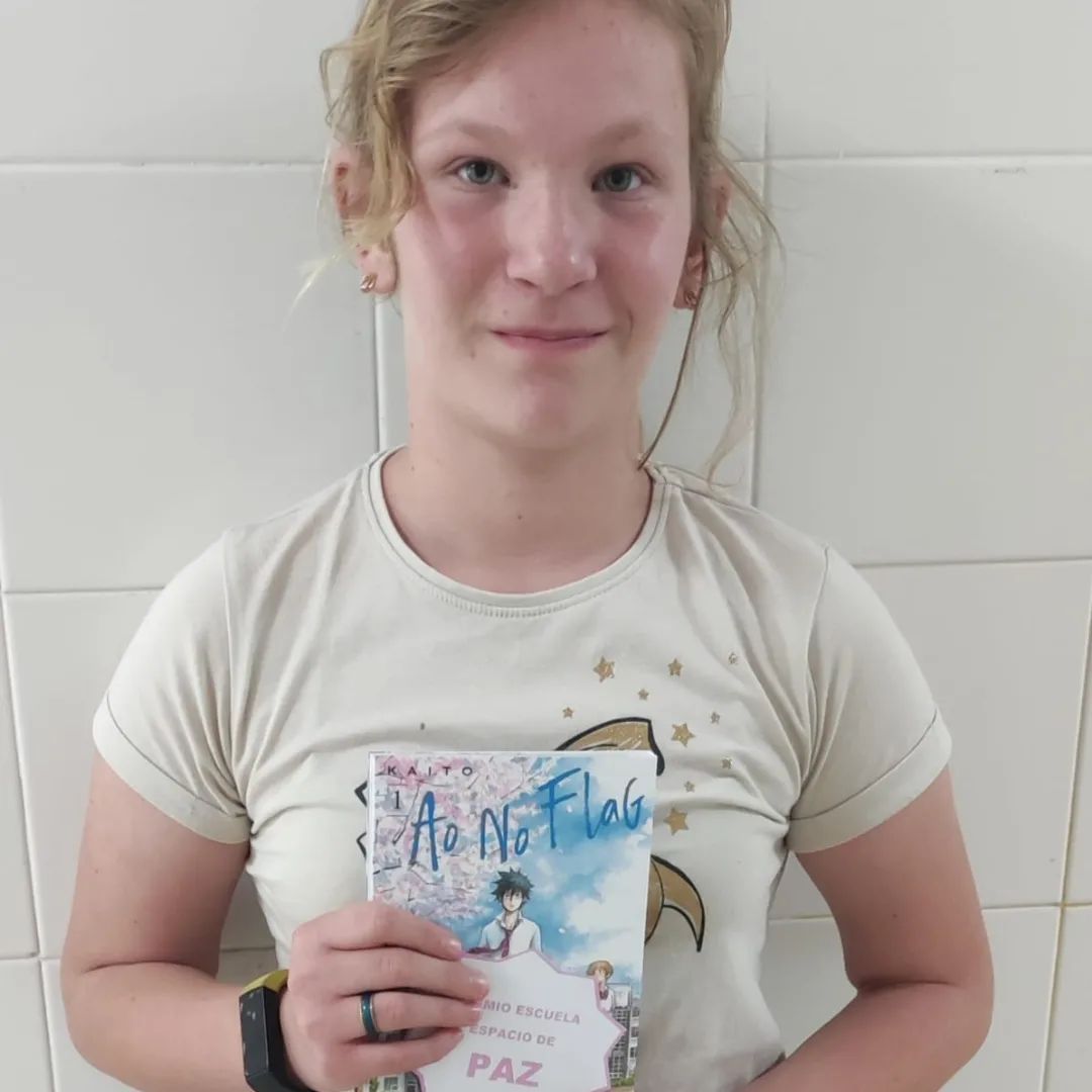 Hoy, nuestra alumna de 1º de ESO B, Vetra, ha recibido su premio en forma de libro al ser su texto el elegido en el concurso Escuela Espacio de Paz.