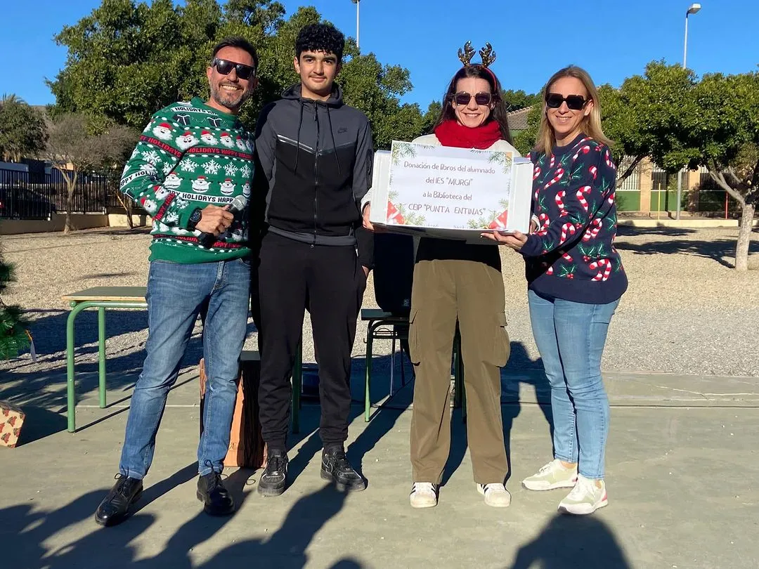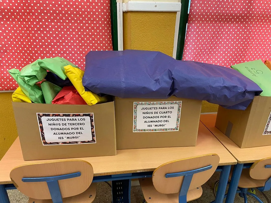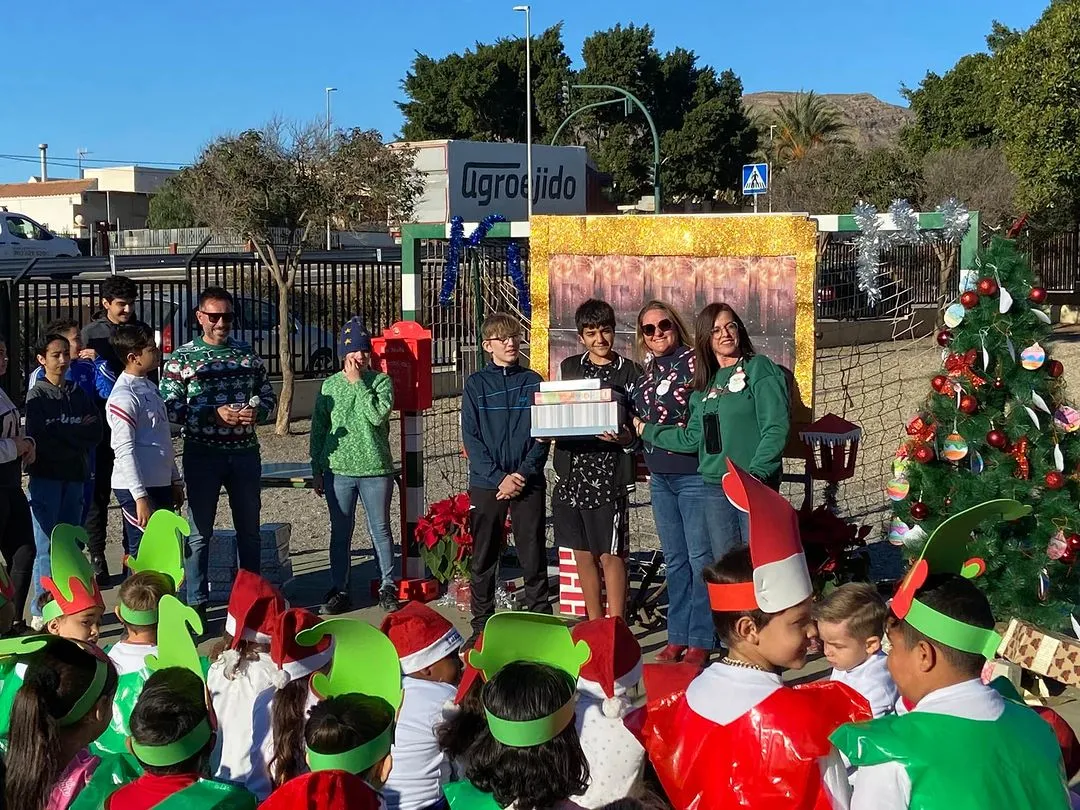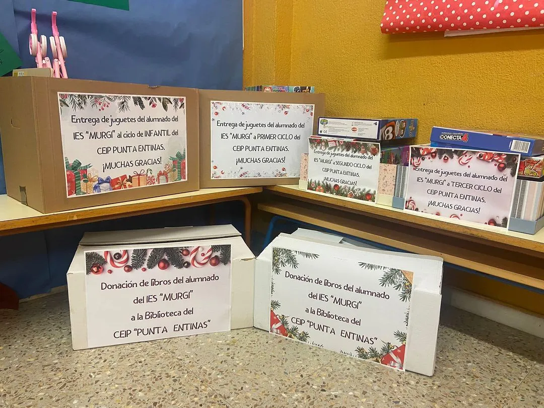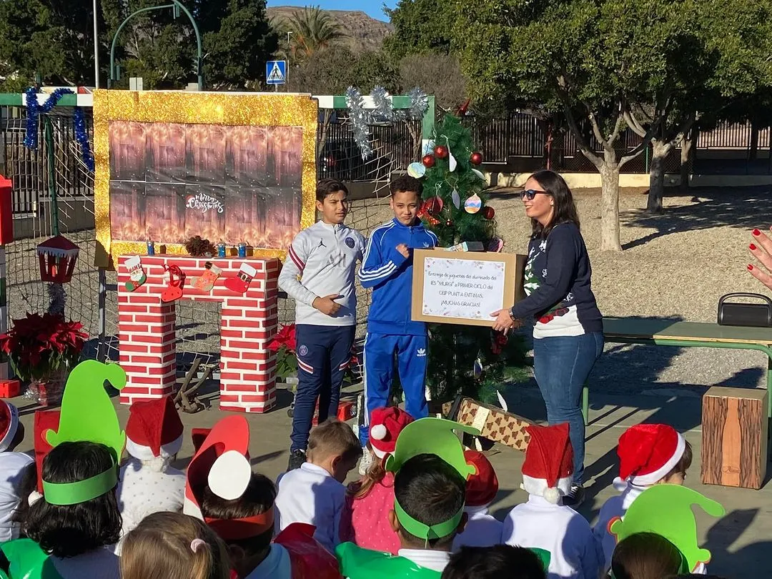 Tras varias semanas de recogida de juguetes y libros en una campaña organizada por la Escuela Espacio de Paz y el Plan de Igualdad en nuestro centro, hoy algunos de nuestros alumnos y alumnas procedentes del CEIP Punta Entinas de Pampanico volvieron a su colegio para participar en una actividad navideña conjunta, entregando los libros y juguetes donados a su alumnado.