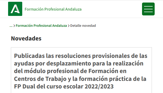 Toda la información en la siguiente web de la formación profesional andaluza y en la siguiente web de becas y ayudas. Ten en cuenta que si deseas presentar una alegación, tienes diez días hábiles, a contar desde el siguiente a su publicación.