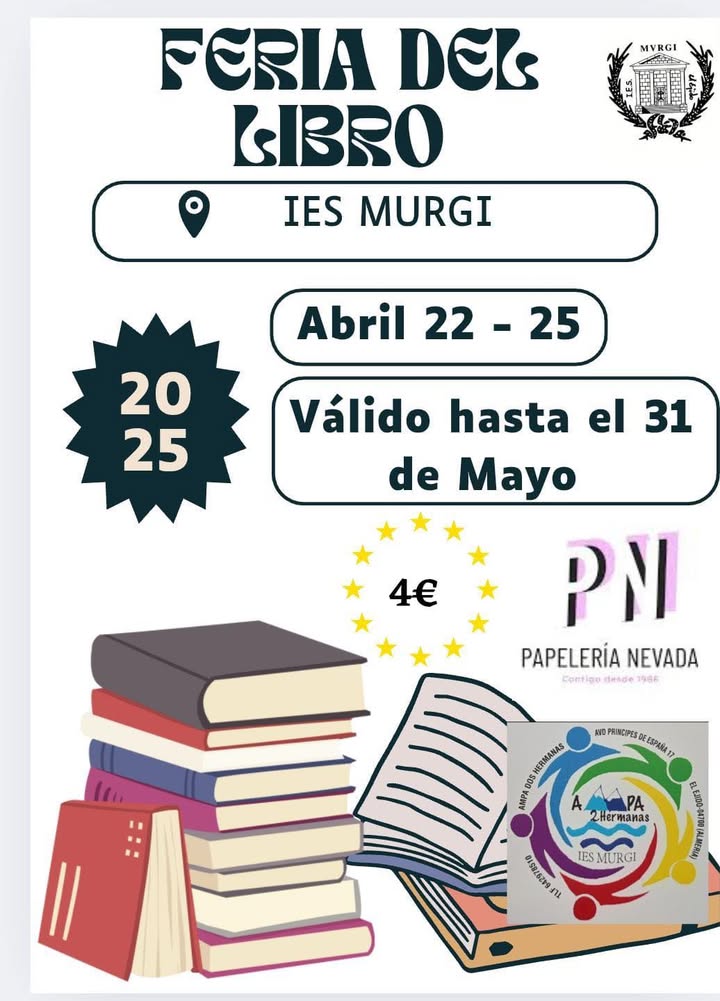 Del 22 al 25 de abril celebraremos la Feria del Libro de nuestro instituto. El alumnado perteneciente al AMPA Dos Hermanas contará con un descuento especial.