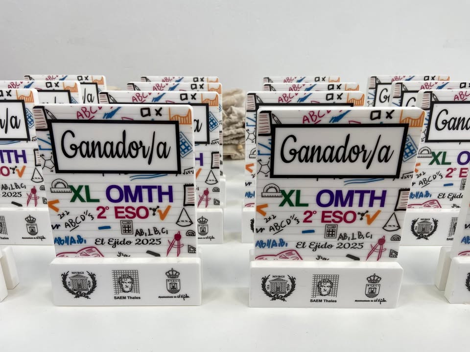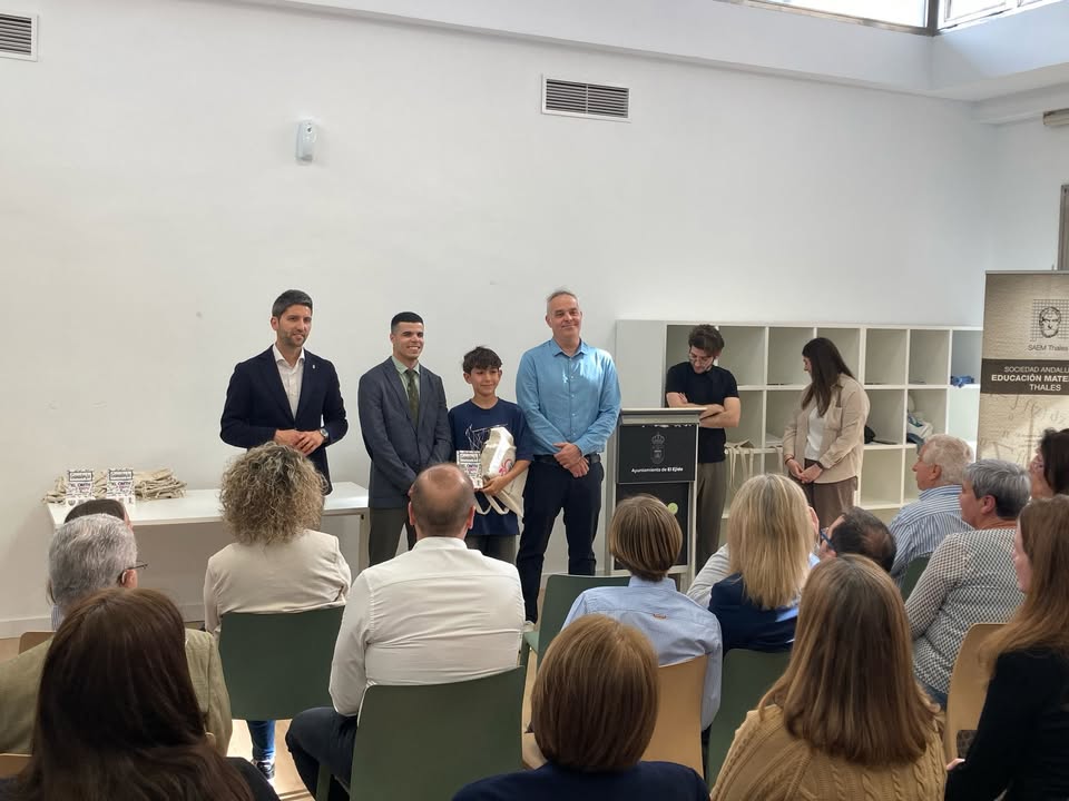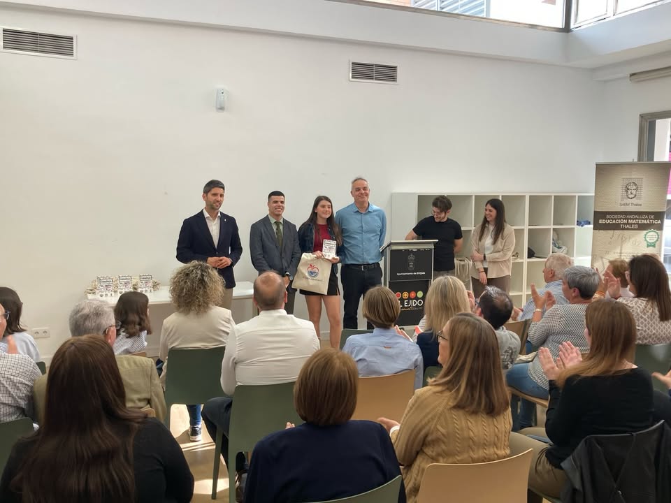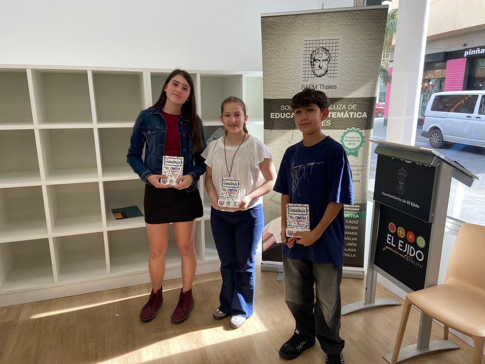 Claudia Rubí Martín, Cristina Muñoz Benavides y Adán Ruiz Veloso recogieron su premio como ganadores de la 40 edición de la Olimpiada Matemáticas Thales que celebramos en el IES Murgi el mes pasado.