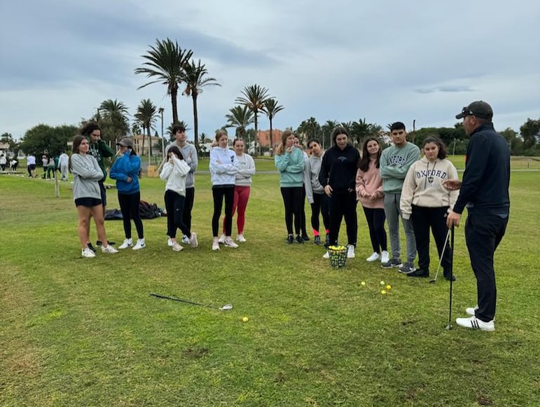 Nuestros estudiantes de 2º de Bachillerato han tenido la oportunidad de conocer de cerca y participar en el apasionante deporte del golf. Para ello, nos desplazamos al campo de golf de Almerimar, donde experimentaron la emoción de jugar en un entorno profesional y recibieron clases de instructores expertos.