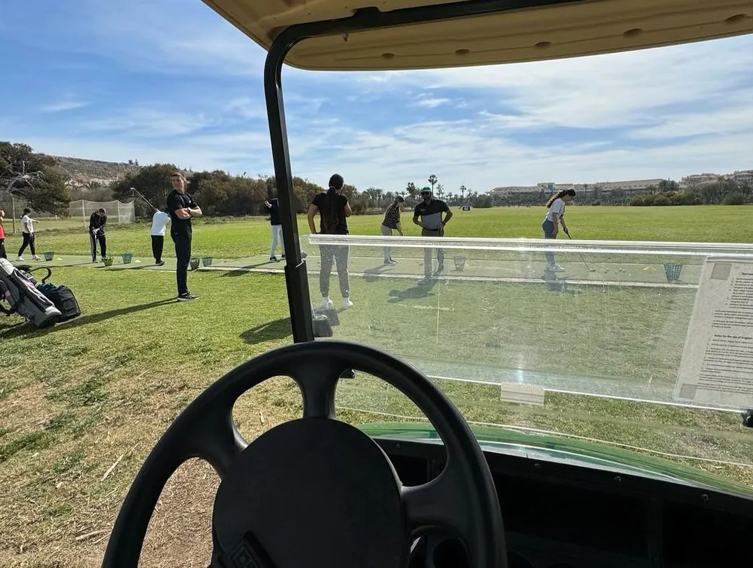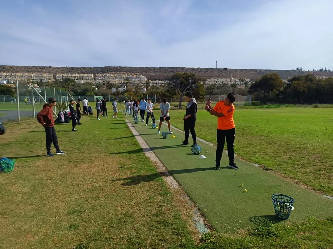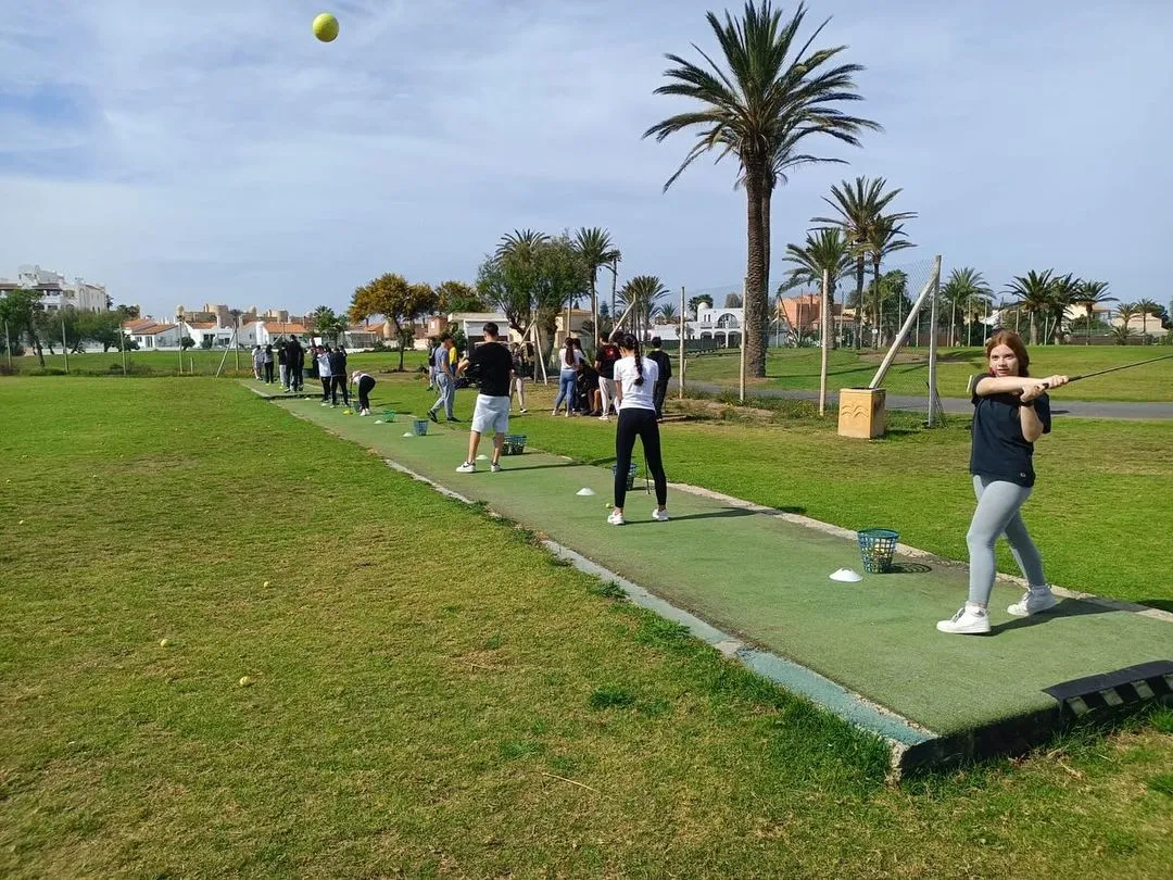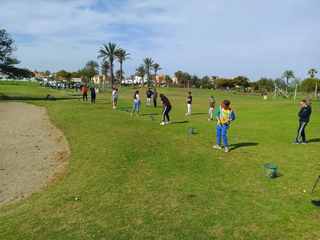 Al igual que en el primer trimestre con 2º de Bachillerato, el alumnado de 4º de ESO ha tenido la oportunidad de conocer de cerca y participar en el apasionante deporte del golf. Para ello, el alumnado y el profesorado de Educación Física nos desplazamos al campo de golf de Almerimar, donde experimentaron la emoción de jugar en un entorno profesional y recibieron clases de iniciación al golf impartidas por instructores expertos.
