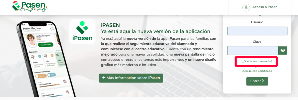 Si no recuerda su contraseña de Pasen puede recuperarla siguiendo los siguientes pasos: