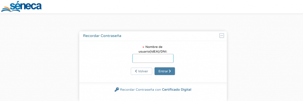 2 . Si accede a través de la web, haga click en «¿ Olvidó su contraseña ?«, introduzca su nombre de usuario. Tras hacerlo, recibirá un SMS con la contraseña en el teléfono que puso en su matrícula.