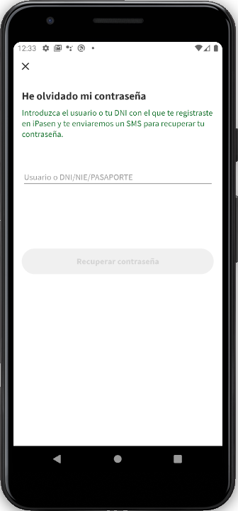 3 . Si accede a través de la aplicación, haga click en «¿ Has olvidado tu contraseña ?«, introduzca su nombre de usuario. Tras hacerlo, recibirá un SMS con la contraseña en el teléfono que puso en su matrícula.