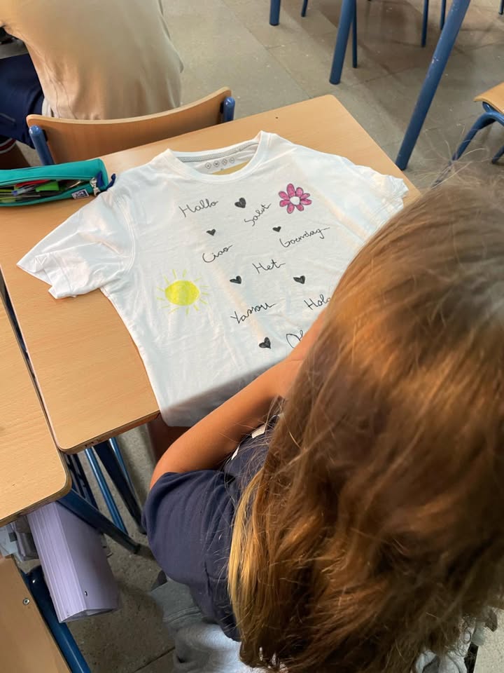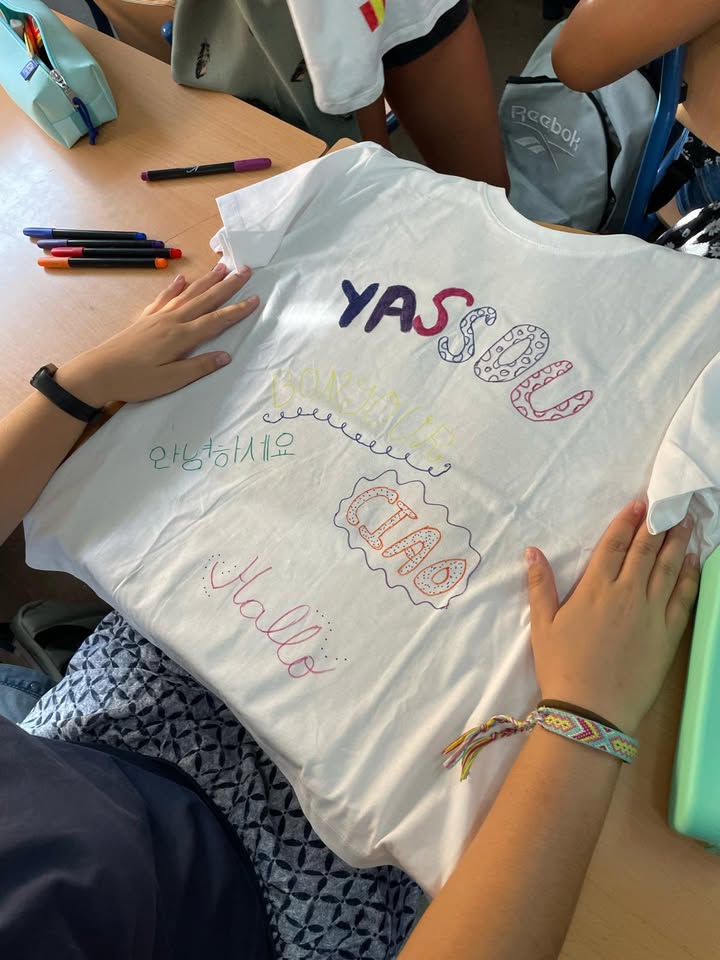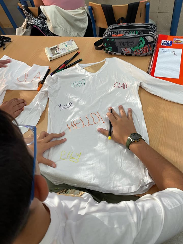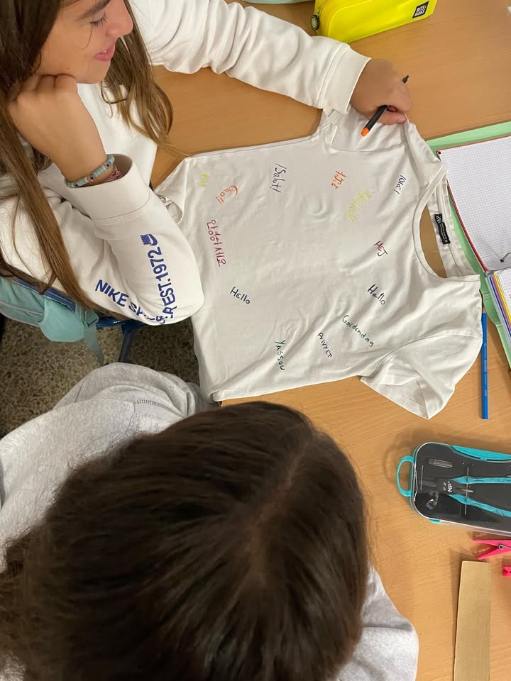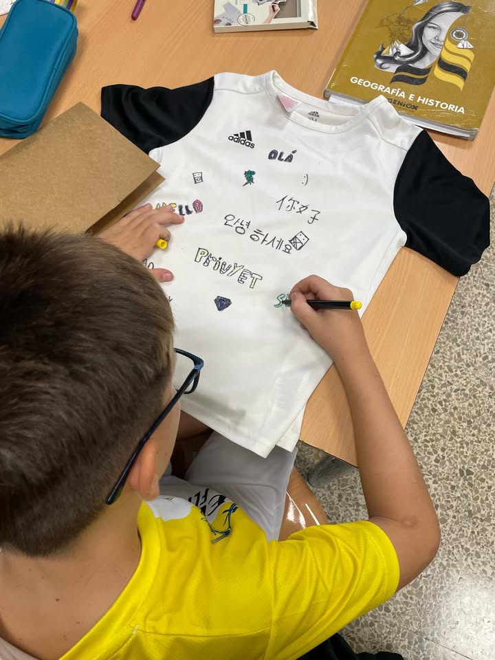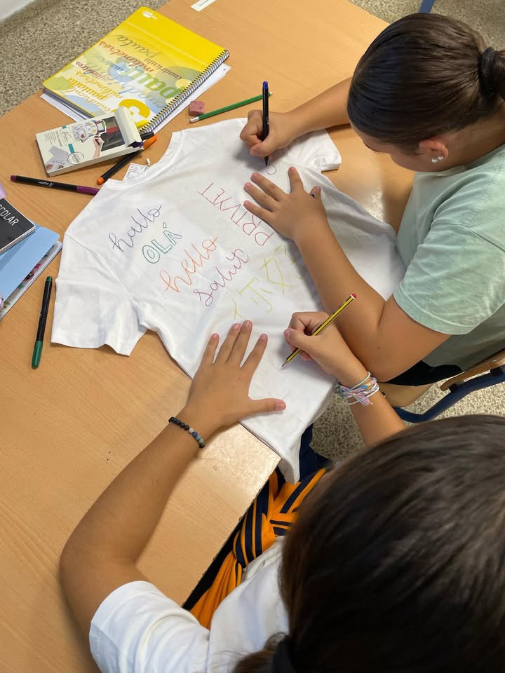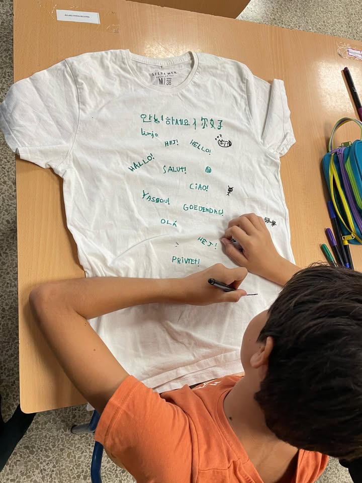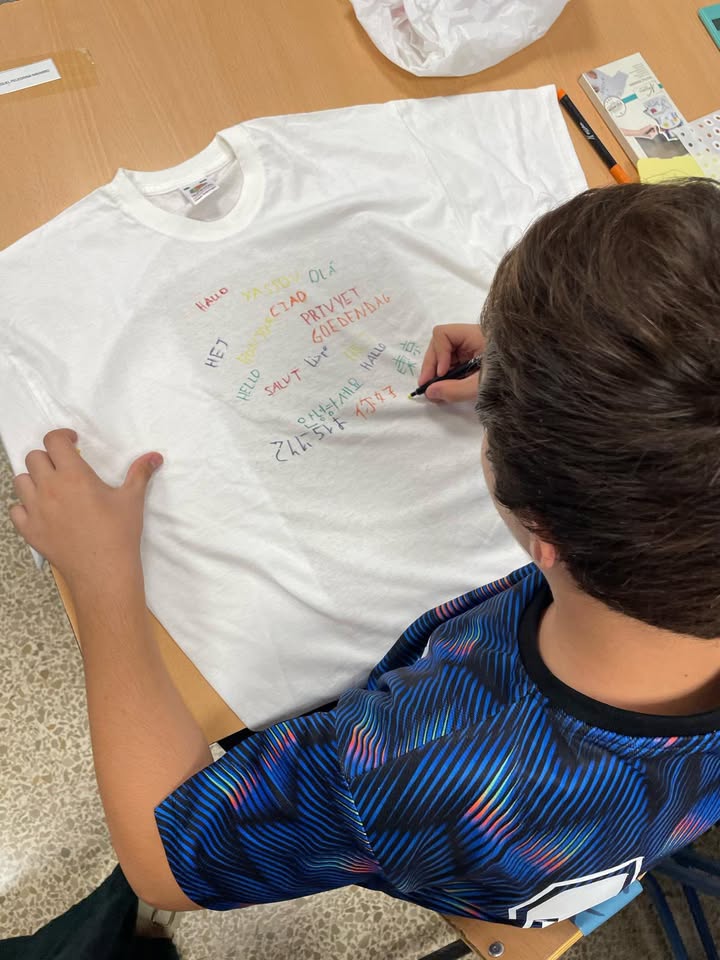 Para conmemorar el «Día europeo de las lenguas» nuestro alumnos y alumnas de 1° de ESO han realizado un taller donde han podido diseñar sus propias camisetas con un saludo en múltiples idiomas. Queda claro que las lenguas y el arte van de la mano.